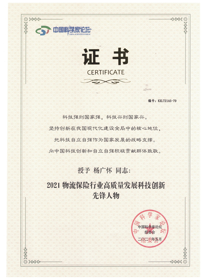 第十八届科学家论坛授予基力保险及董事长荣誉